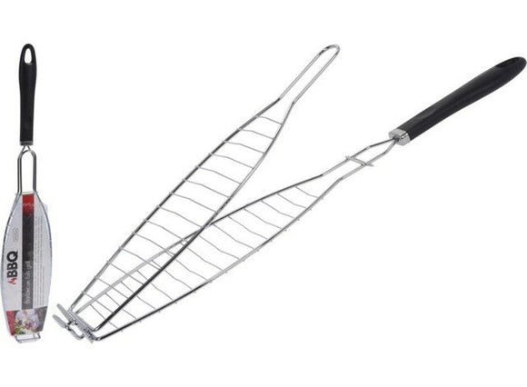 6.880 OMRسعر الوحدة /غير متوفرشواية سمك للشواء مطلية بالكروم بمقبض بلاستيكي أسود، الطول 58 سم، مساحة الطهي 29x10 سم