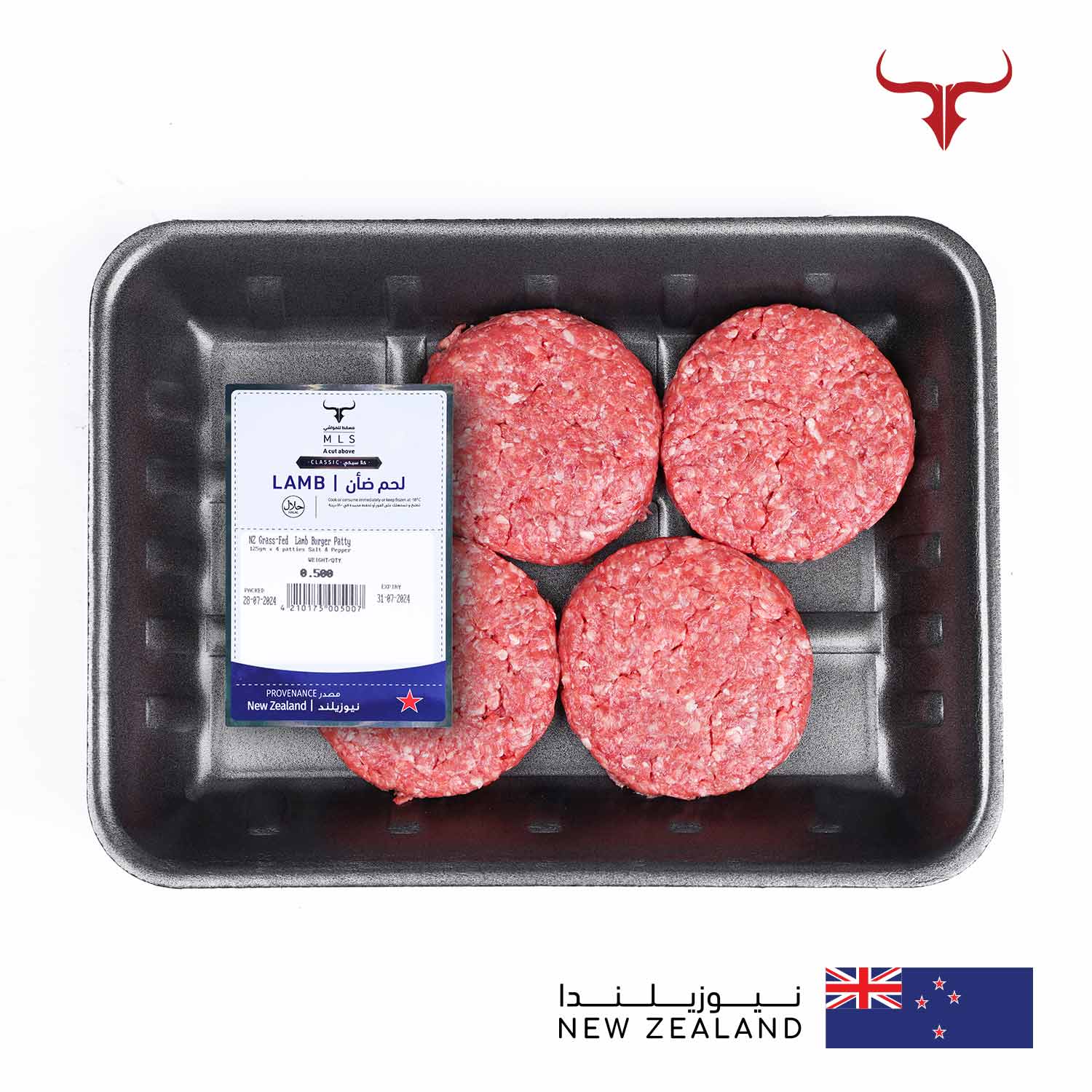 4 patties of 125 gm each of fresh lamb burgers from New Zealand Lamb.