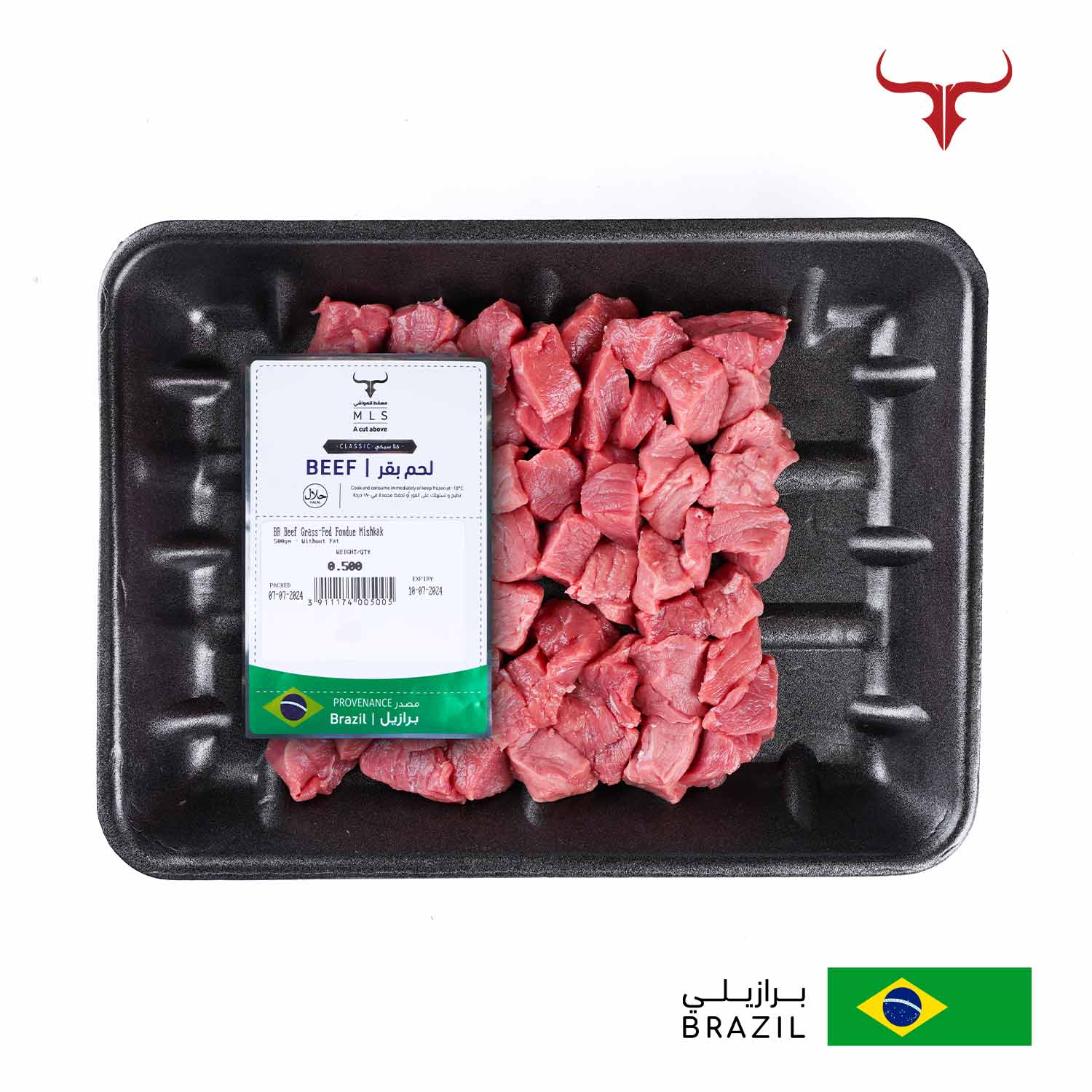 250gm, 500gm, or 1kg packet of fresh beef fondue made from topside or knuckle of grass-finished Brazilian beef.