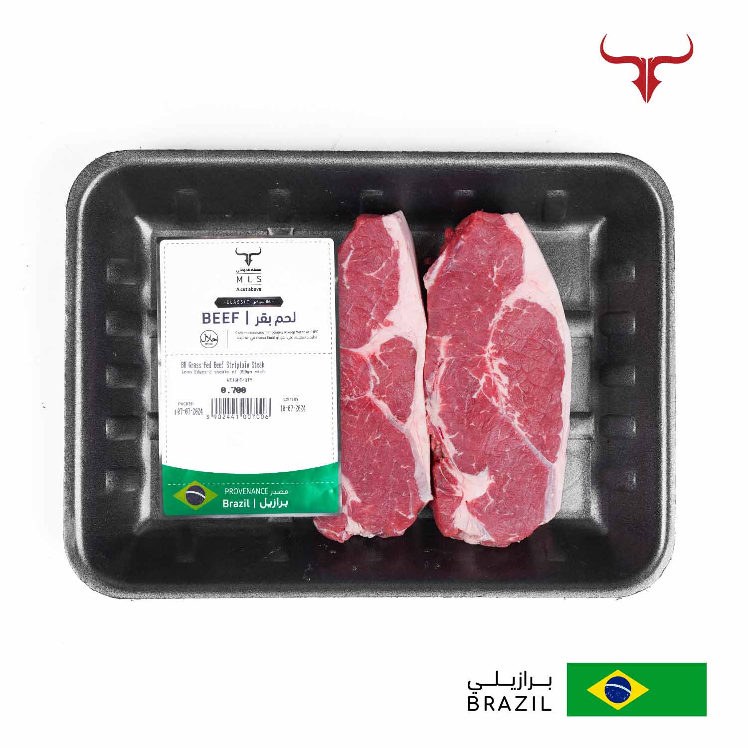 1 OR 2 steaks of fresh beef striploin from grass-fed Brazilian beef.