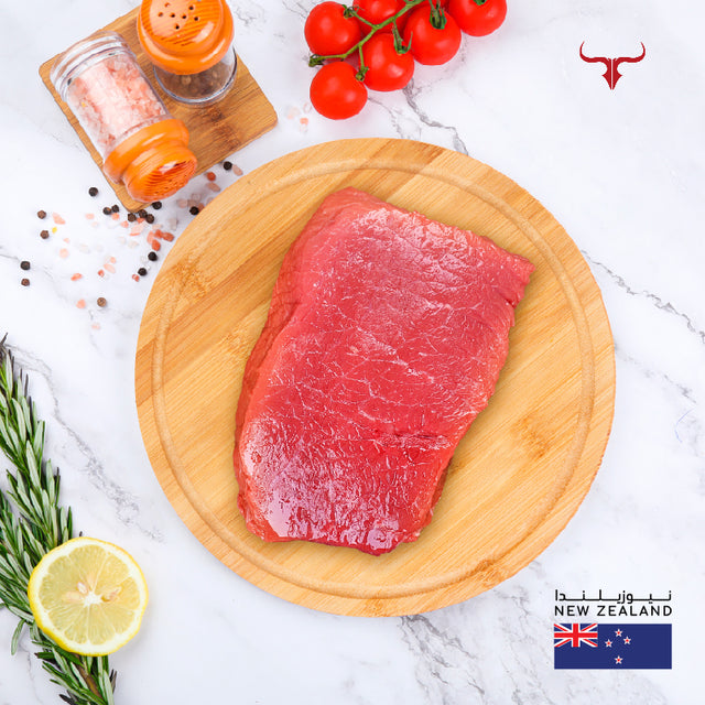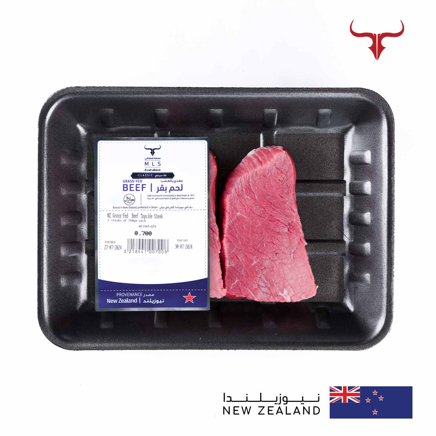 1 or 2 steaks of 250gm of fresh beef topside from grass-finished New Zealand beef.