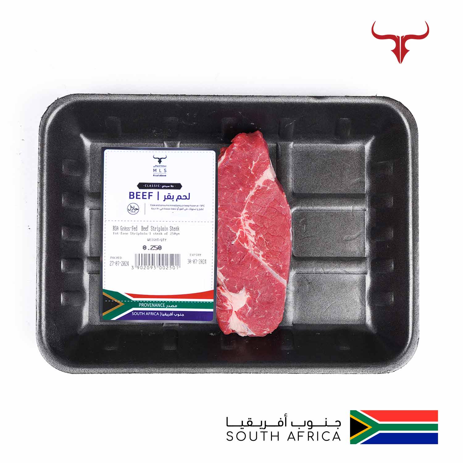 1 OR 2 steaks of 250gm each of fresh beef striploin from grass-fed South African